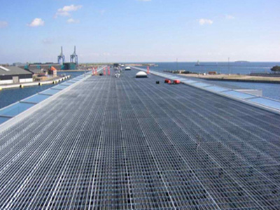 1、由扁鋼寬 65mm—200mm厚5mm—20mm 等點焊形成 的熱鍍鋅鋼格板為后重載型熱鍍鋅鋼格板.適用于大型貨場,碼頭,煤礦 道路橋梁等,能承載大型貨車通過。